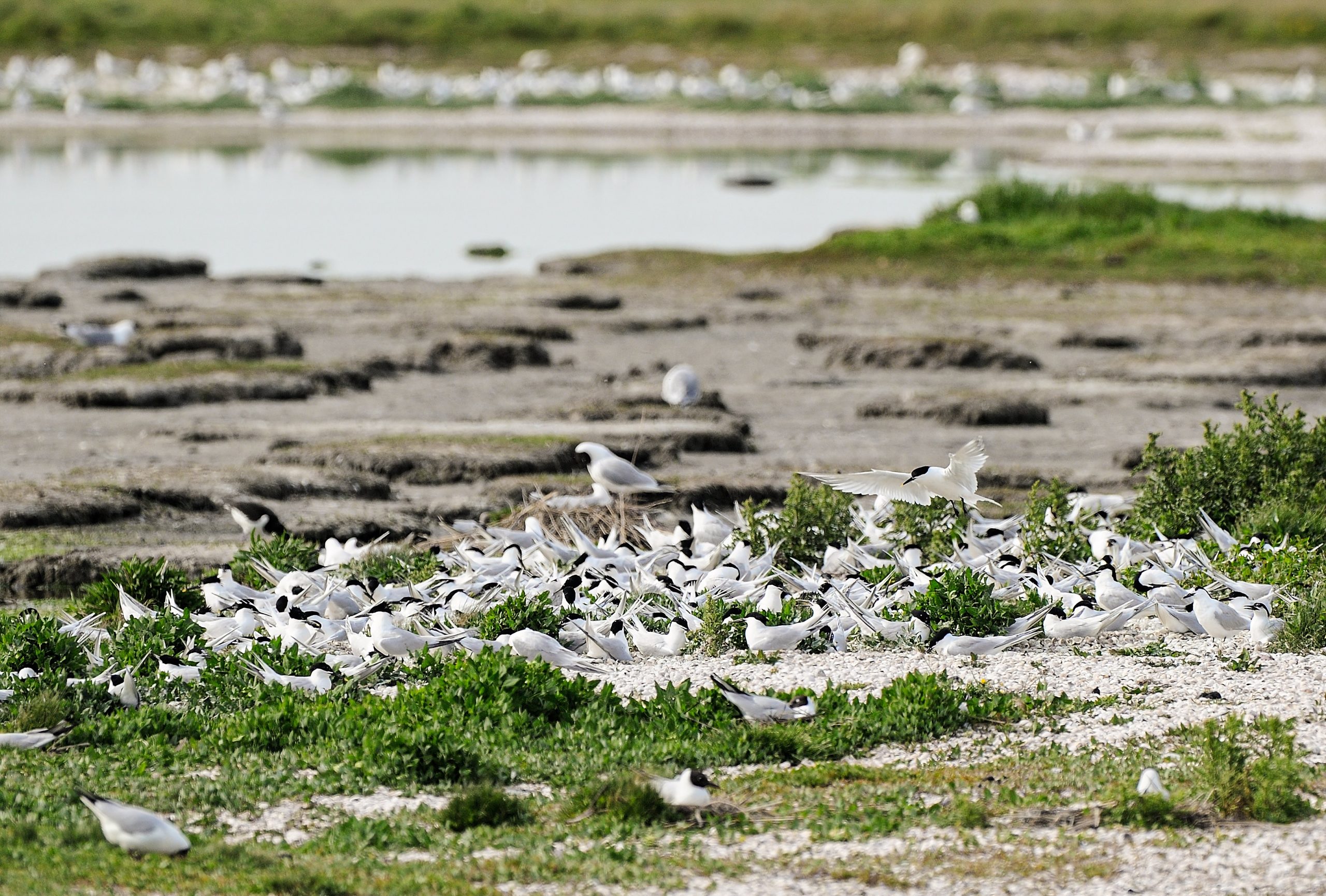Die erneute Benennung der Brandseeschwalbe als Seevogel des Jahres verdeutlicht, wie stark die Art aktuell durch die Vogelgrippe gefährdet ist. In der Roten Liste der Brutvögel Deutschlands befindet sich die Brandseeschwalbe in der Kategorie „vom Aussterben bedroht“. Die über 10.000 bei uns brütenden Paare verteilen sich auf nur wenige Koloniestandorte in der Nord- und Ostsee. Brandseeschwalben nisten auf der Hallig Norderoog, auf Baltrum, Langeoog, Neuwerk und Minsener Oog im Wattenmeer sowie auf der Barther Oie bei Zingst und der Insel Langenwerder in der Ostsee. Fast alle Brutvorkommen der Art liegen in Schutzgebieten, die aufgrund ihrer Insellage für Prädatoren nur unter erschwerten Bedingungen erreichbar sind, und in denen eingeschränkte Betretungsmöglichkeiten Schutz vor menschlichen Störungen bieten.